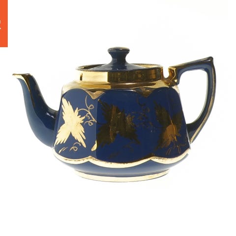 Keramik thepotte med fint blomstermotiv fra Füssen (str. 14 cm)