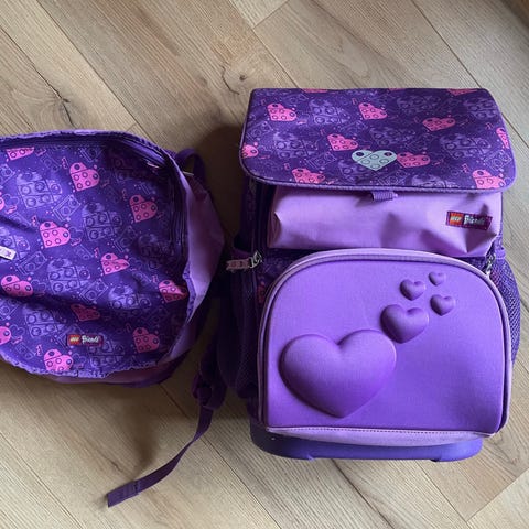 Rygsæk markedsført under LEGO Friends-mærket. Rygsækken har et farverigt design med sommerfugle, stjerner og hjerter på fronten. Den har en stor lynlåslomme foran og to justerbare skulderremme bagpå, i en kombination af lyseblå og lilla farver. Dimensionerne på rygsækken er 35x29 cm.