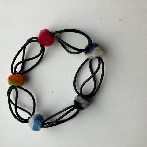 Håndlavet gummi armbånd med farvede sten (str. Ø 7 cm)