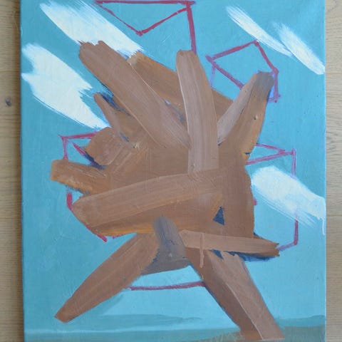 Originalt og sjældent tidligt maleri af Lene Adler Petersen (f. 1944), udført i 1964 – før hendes gennembrud som koncept- og performancekunstner.