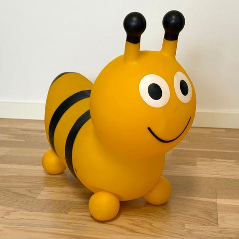 Oppustelig legetøj, Skippy Unicorn designet til børn over 18 måneder. Unicorn er hvid med en lyserød hale og horn. Designet er skabt til at give børn en sjov og tryg legeoplevelse. Tags: unicorn, legetøj, børn.
