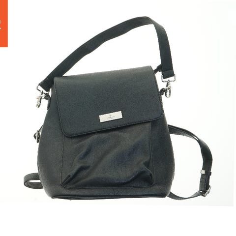 Denne håndtaske har en elegant rektangulær form med to robuste håndtag til komfortabel bæring. Tasken er lavet af sort læder, hvilket gør den alsidig og tidsløs. Den måler 27x21,5 cm, hvilket giver tilstrækkelig plads til dagligdags genstande. Tasken fremstår uden mærkbare logoer eller brandnavne.