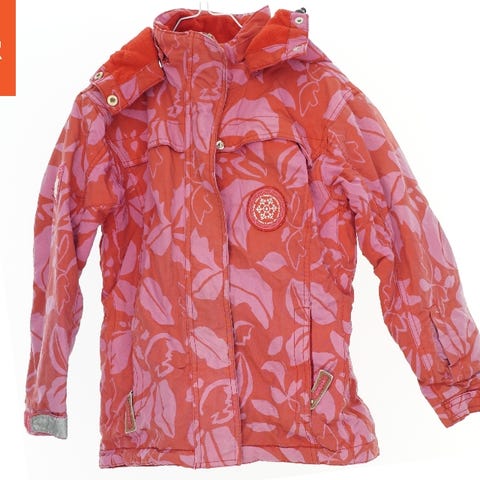 Denne jakke er beregnet til børn og har en mørkeblå farve. Den er udstyret med en hætte og to forlommer, hver med en knaplås. Der er en lynlås i midten foran på jakken. Bagsiden af jakken har et Ticket-logo nederst.