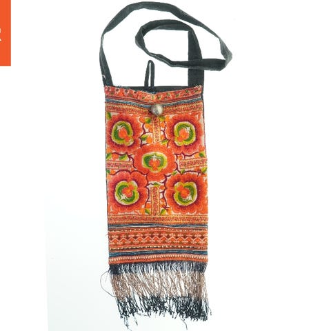 Sort taske med blomsterbroderi (str. 26x17 cm)