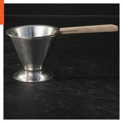 En metalstrøer i rustfrit stål beregnet til at drysse krydderier som kakao eller flormelis. Strøeren har en højde på 14 cm og et skruelåg med huller til jævn fordeling af indholdet.