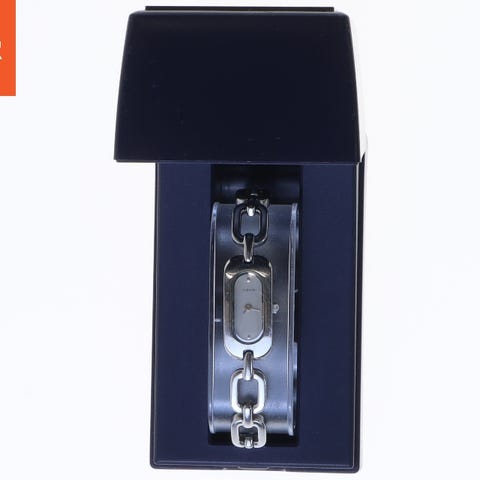 Dette er et stilfuldt sølvfarvet armbåndsur med en 40 mm urskive. Uret har en sort urskive med tre mindre skiver til funktioner som stopur eller sekundvisning. Det har tre knapper på den højre side af urskiven for styring af forskellige funktioner. Remmen er lavet af metal og passer til både formelle og uformelle lejligheder.