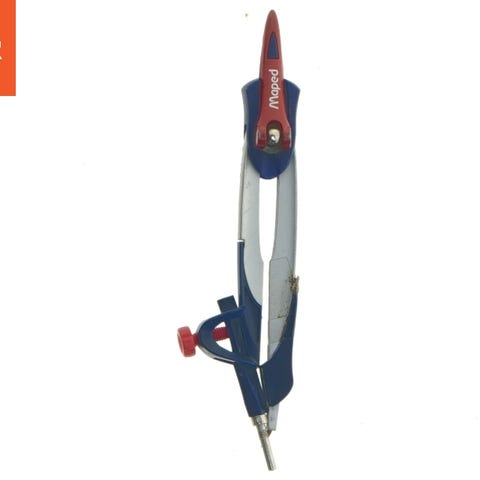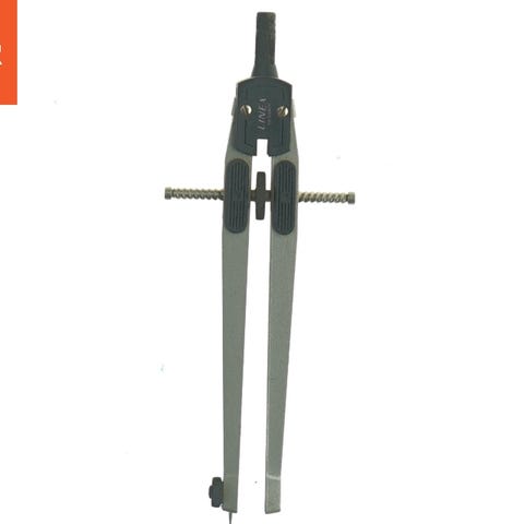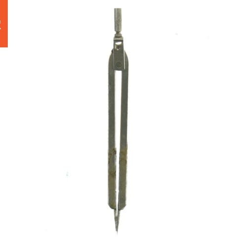 Passer af metal, ideel til præcis cirkeltegning. Den har justerbare ben og en skruemekanisme til at fastsætte radius. Perfekt til geometriske tegninger og skolebrug. Mål: 15 cm.