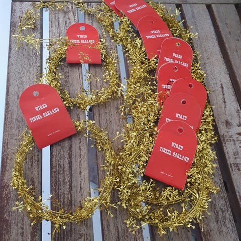 Denne guld guirlande er typisk anvendt til at dekorere juletræer eller til generel dekoration under julefestligheder. Den er lavet af skinnende, guldfarvet metallic materiale, hvilket giver den en festlig og glamorøs udseende. Guirlanden er fleksibel og kan formes rundt om trægrene eller andre dekorative elementer.