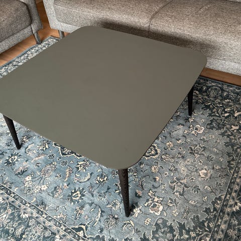 Super fint sofabord fra Ilva, med ben i massiv eg og bordplade i blødt nano laminat. Mulighed for at tilføje en hylde under bordet (se evt Ilvas hjemmeside)