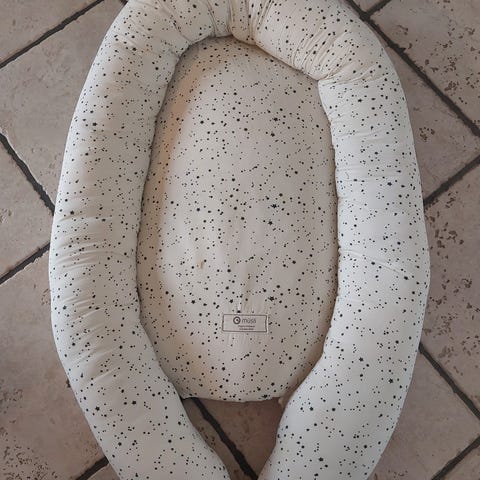 Moweo babynest med sele i grå farve. Babynest er designet til at give en tryg og komfortabel plads til babyen. Selen sikrer ekstra sikkerhed under brug.