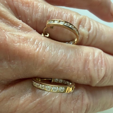 14 karat 585 guld øreringe der er størrelse forskel på øreringene samt farve forskels på perlerne det kan ses på billedet. Låse har jeg desværre ikke. Har selv køb dem brugt