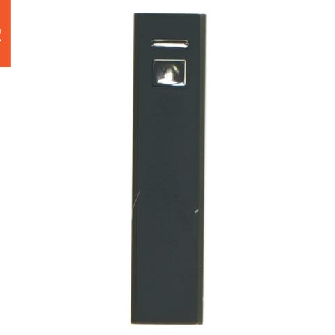 Dette er en mobil powerbank med en størrelse på 11x7,5 cm. Den er designet til at oplade smartphones og andre små elektroniske enheder. Powerbanken har en enkelt knap og kommer med en tilhørende opladningskabel. Den leveres i en enkelt emballagekasse.