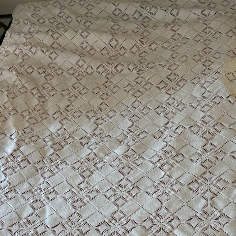 Hæklet hvidt sengetæppe med mønster