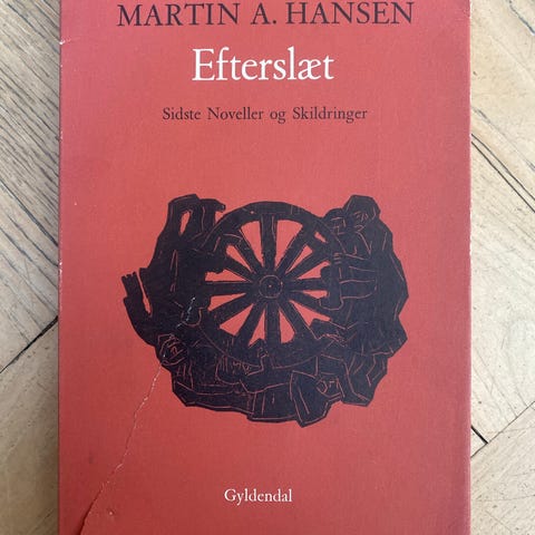Efterslæt, Martin A.Hansen, genre: roman, Pæn indbundet med smudsomslag , Gyldendal, 1959, 179 sider.