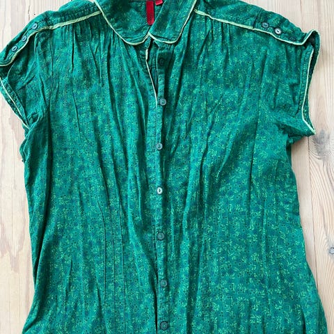 Pæn bluse i skjortebluse facon men uden ærmer. Str. S.