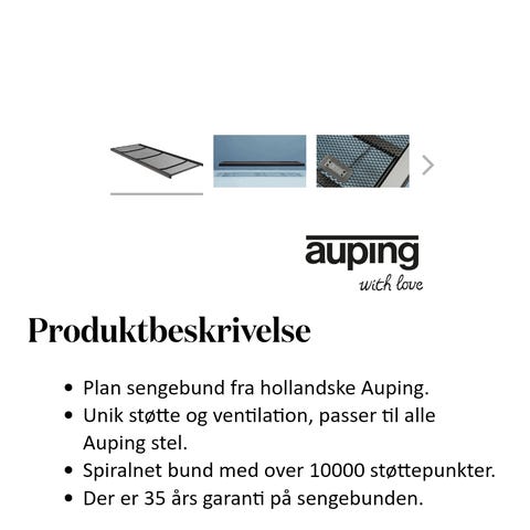 Sælger en original Auping sengeramme i høj kvalitet inkl. 2 stk. elevationsbunde.