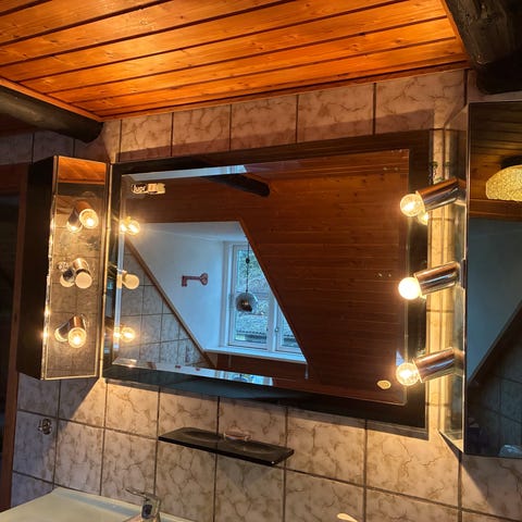 Retro: spejl lamper og toiletrulleholder.