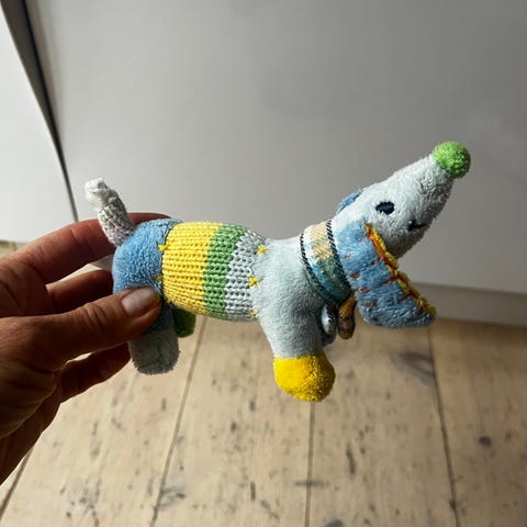 Bamse labrador blød bamse labrador i lysebrun farve. Bamsen er lavet i blødt materiale og har en størrelse, der kan sammenlignes med en kuglepen, som vist på billederne. Egnet som legetøj eller krammedyr.