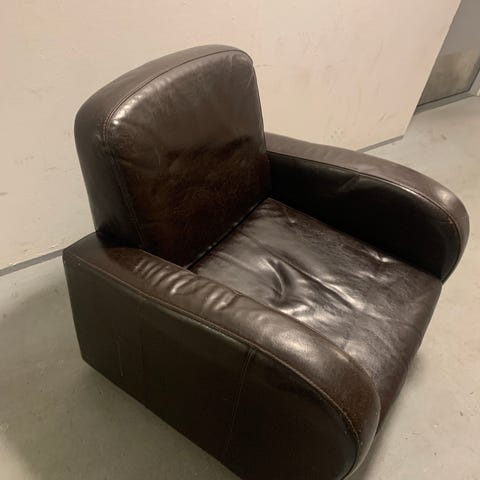 Sort læderstol, kan vippe...med tilhørende læderskammel. Fra Ilva