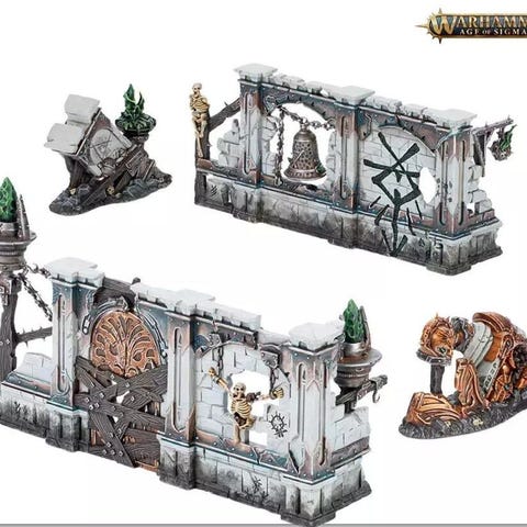 Games Workshop Warhammer figur sæt bestående af flere dele til samling og maling. Indeholder figurddele, skjolde og bases i gråt plast.