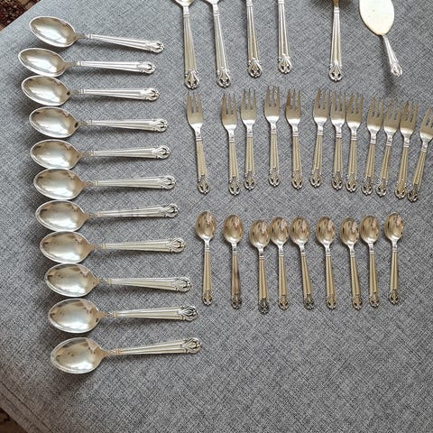 I alt 64 dele. Excellence / Exellence sølvplet. Generel fin stand - nogle dele trænger til at blive pudset. Produceret af Chr. Fogh og A.P. Berg.