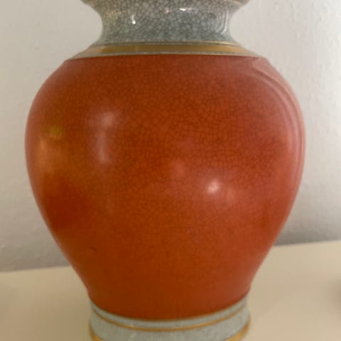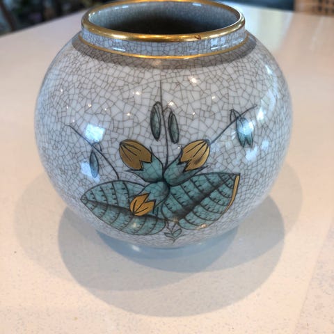 Kgl porcelæn krakele vase grøn med guldstriber og en anelse grå