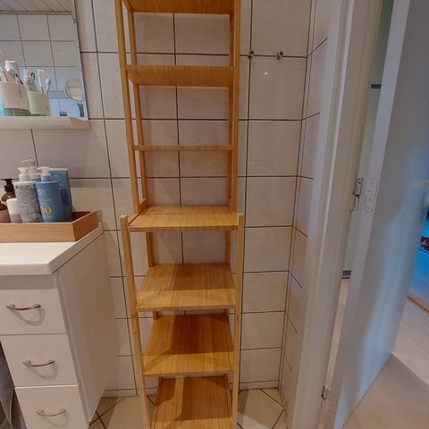 • Stand: Flot og velholdt (væghylden er stadig i original emballage). Skoreol og tøjstativ er ikke brugt, kun samlet. Rullebordet er det eneste som har været brugt, ellers er det helt nyt. (Tøjv& sko på billeder er for illustration).