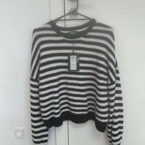 Bona partSweater i sort med røde striber. Sweateren er i størrelse L og designet til kvinder.