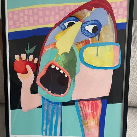 4 fantastiske litografier (Kong Gulerod, Kyssedyr, Knudemand og Fløjtedyr) af kunstneren Leif Sylvester fra 2004, som netop nu er aktuel i tv programmet kunstnerkolonien 2026.