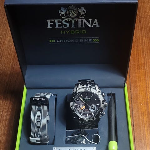 Helt nyt ur fra Festina ur med metal Rem. 22 cm . Fik det aldrig taget i brug, da jeg er mere til Smartwatch. Der er sat en skærm beskyttelse på så der vil ikke være ridser på skærmen. Prisen er fastlagt ud fra kvittering og at der er sat stålrem på. Læderrem følger med