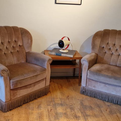 Smukke vintage lænestole i velour. Meget behagelige og nemme at holde pga. velouren. Sælges samlet eller stykvis.