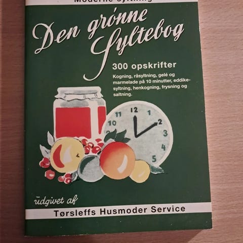 Tørsleffs Husmoder Service Den grønne Syltebog kogebog med 300 opskrifter til syltning, konservering og lignende madlavningsteknikker. Indeholder opskrifter til forskellige typer af frugt, grøntsager og andre ingredienser til syltebrug.