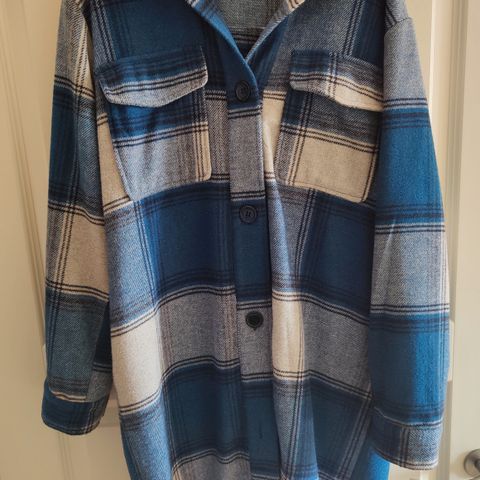 Vatteret frakke m plysfor - næsten ikke brugt.