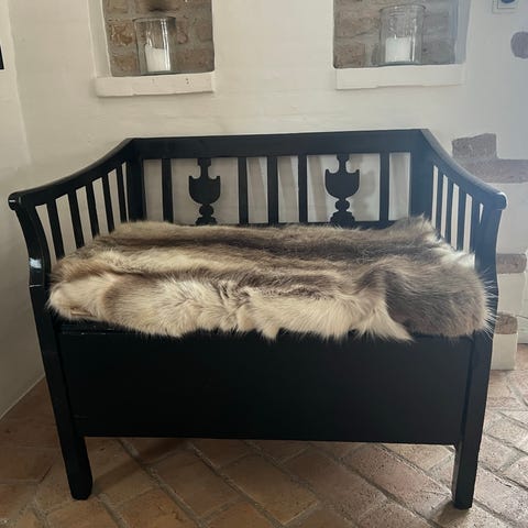 Bænken har indbygget skuffe/opbevaring, som nemt kan trækkes ud.
