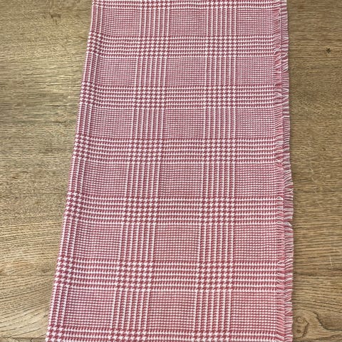 Ternet uld tørklæde med grøn, sort hvid og gul farve. Tørklædet måler 20*110, er lille i størrelsen,