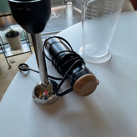 Blenderen er kompakt og pladsbesparende, men stadig fuldt funktionel til daglig madlavning – perfekt til smoothies, supper og saucer.
