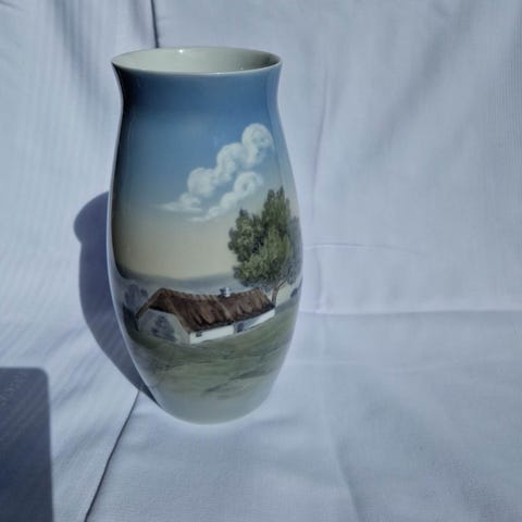 Bing & Grøndahl Vase med landskabsmotiv, håndmalet