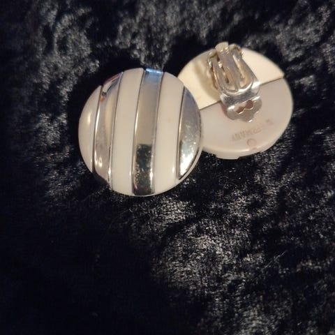 Øreclips i sølvfarvet materiale med spejl lignende front. Fra 70erne.