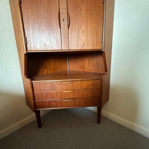 Teak Hjørneskab Med Bar