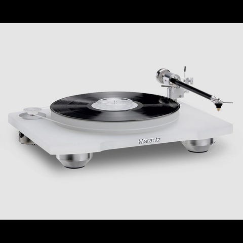 · Alle knapper, tonearm, pladetallerken og bagplade er der.