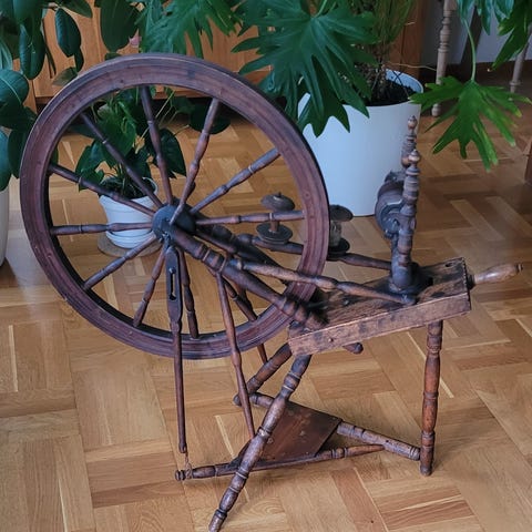Fin gammel spinderok. Ingen skader , Hjul kører fint rundt,når man træder på fodpedal.