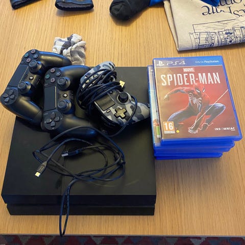 Sony Playstation 4 spillekonsol med to controllere og tilbehør
