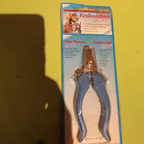 TRIXIE Nail Scissors til hunde med ergonomisk design og blå håndtag. Produktet er beregnet til klipning af hundens negle og er fremstillet med fokus på komfort og funktionalitet.