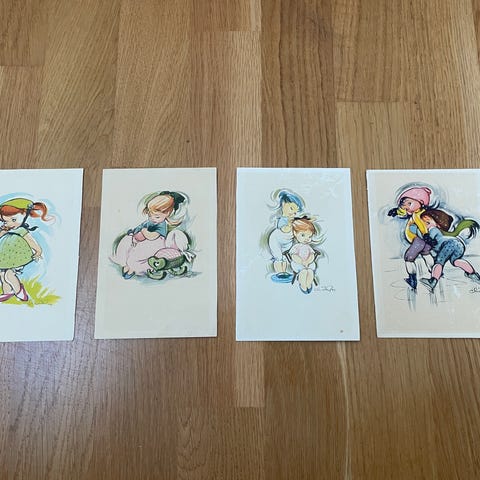 Samling af forskellige vintage retro Christel postkort påklædningsdukker og illustrationer med motiver. Indeholder flere ark og enkelte løse klistermærker i forskellige størrelser og farver. Velegnet til samlere eller til kreativ brug.