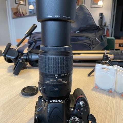 Sælger dette supergode Nikon D5300 spejlreflekskamera. Er blevet brugt ganske sparsomt. Alt tilbehør følger med, bl.a. manual, fjernbetjening, oplader, kabler, skærmbeskyttere, kabelpose mm. Der medfølger også en kamerataske med lomme. Det eneste, der mangler, er objektivdækslet/objektivlåget, som jeg desværre har tabt, men disse kan man købe billigt.
