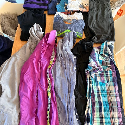 Tøjpakke i str. L med basic 13 t -shirts, 4 sweatshirt, 3 shorts og 3 par bukser (+ et par hvor lynlås i den ene lomme er i stykker). H&M og andre mærker!
