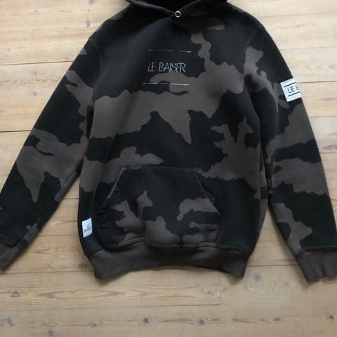 Le Baiser hættetrøje. Mangler den ene ring ved halsen, sælges derfor billigt