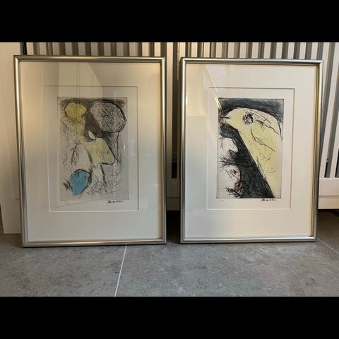 Lidt misfarvning af passepartouten ses i kanten omkring billedet, se foto. Derfor den gode pris.