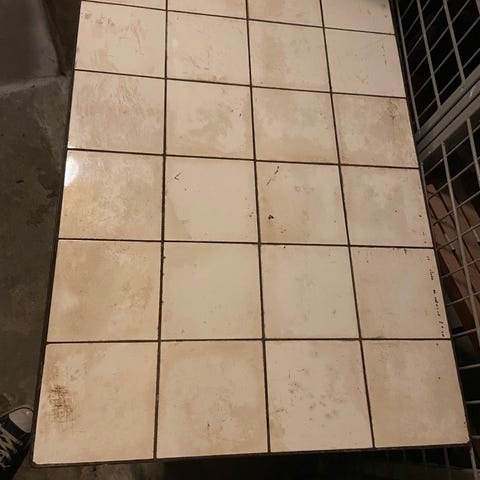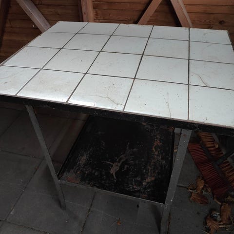 Meget charmerende orginalt bord har masser af patina fliserne er lidt ophøjde i den ene enden 2 række