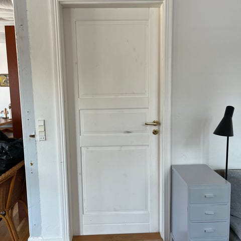 Indvendig dør i træ med metal dørhåndtag